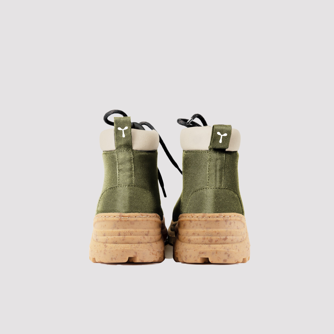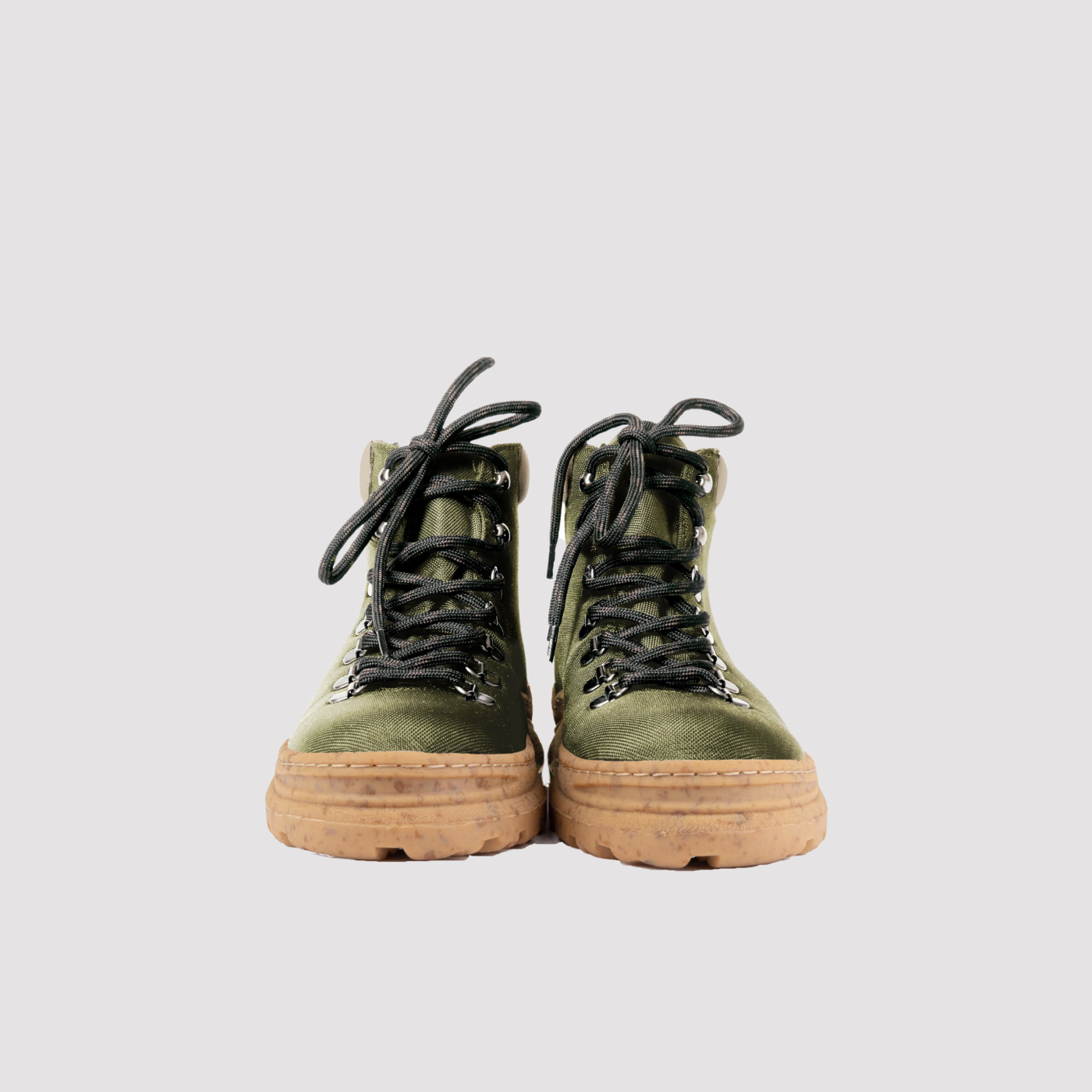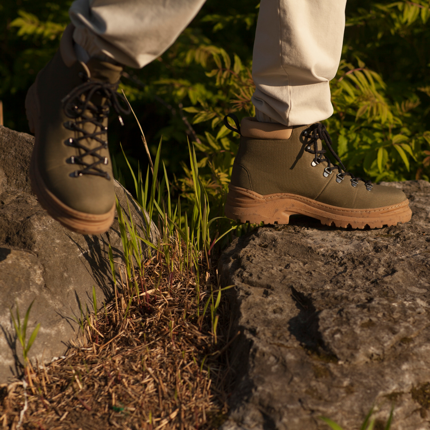 Our Weekend Boots are vegan and 98% virgin plastic free. The nylon upper is made from repurposed marine plastic collected by fishermen globally. Our lug sole is made with natural and recycled rubber. High performance water based vegan glue binds the upper and soles together.