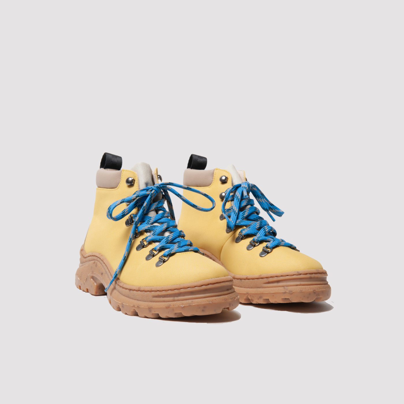 Our Weekend Boots are vegan and 98% virgin plastic free. The nylon upper is made from repurposed marine plastic collected by fishermen globally. Our lug sole is made with natural and recycled rubber. High performance water based vegan glue binds the upper and soles together.