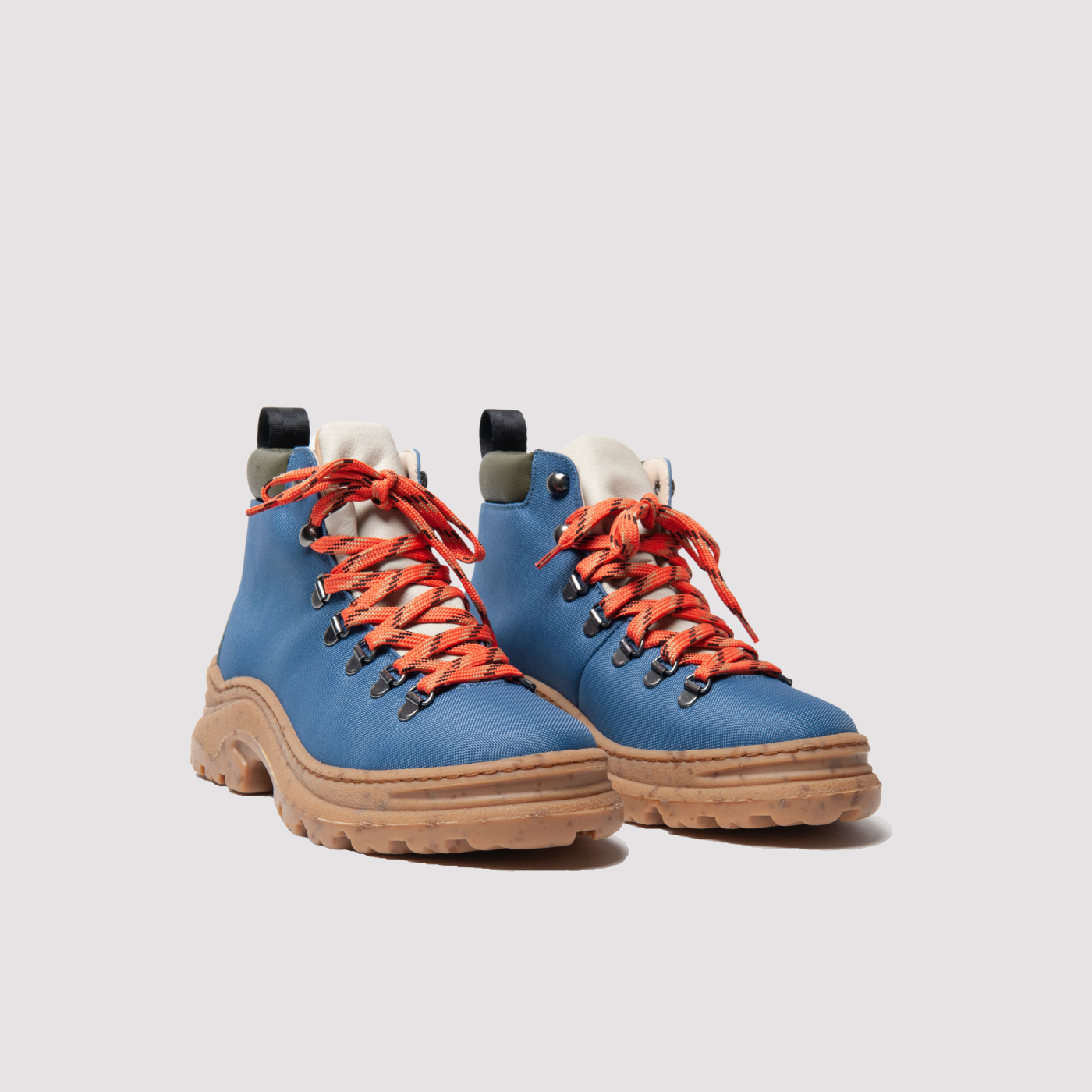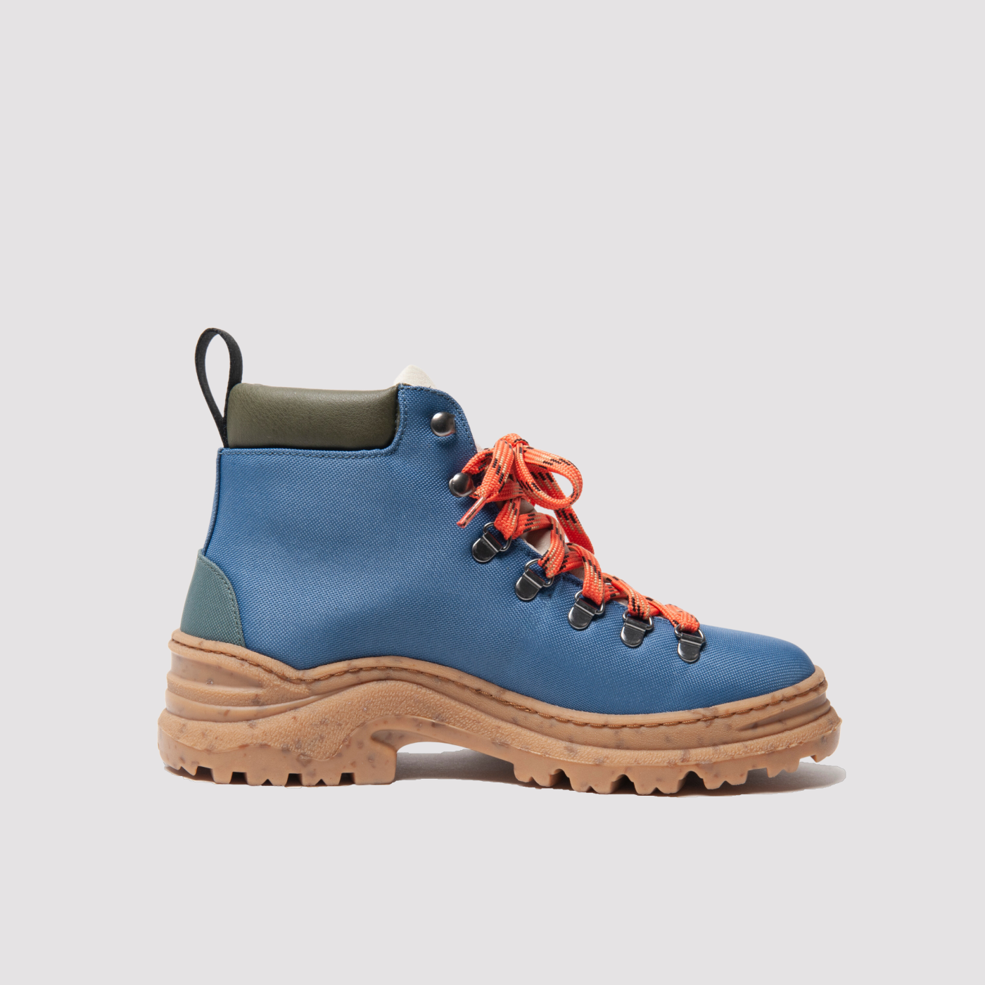 Our Weekend Boots are vegan and 98% virgin plastic free. The nylon upper is made from repurposed marine plastic collected by fishermen globally. Our lug sole is made with natural and recycled rubber. High performance water based vegan glue binds the upper and soles together.