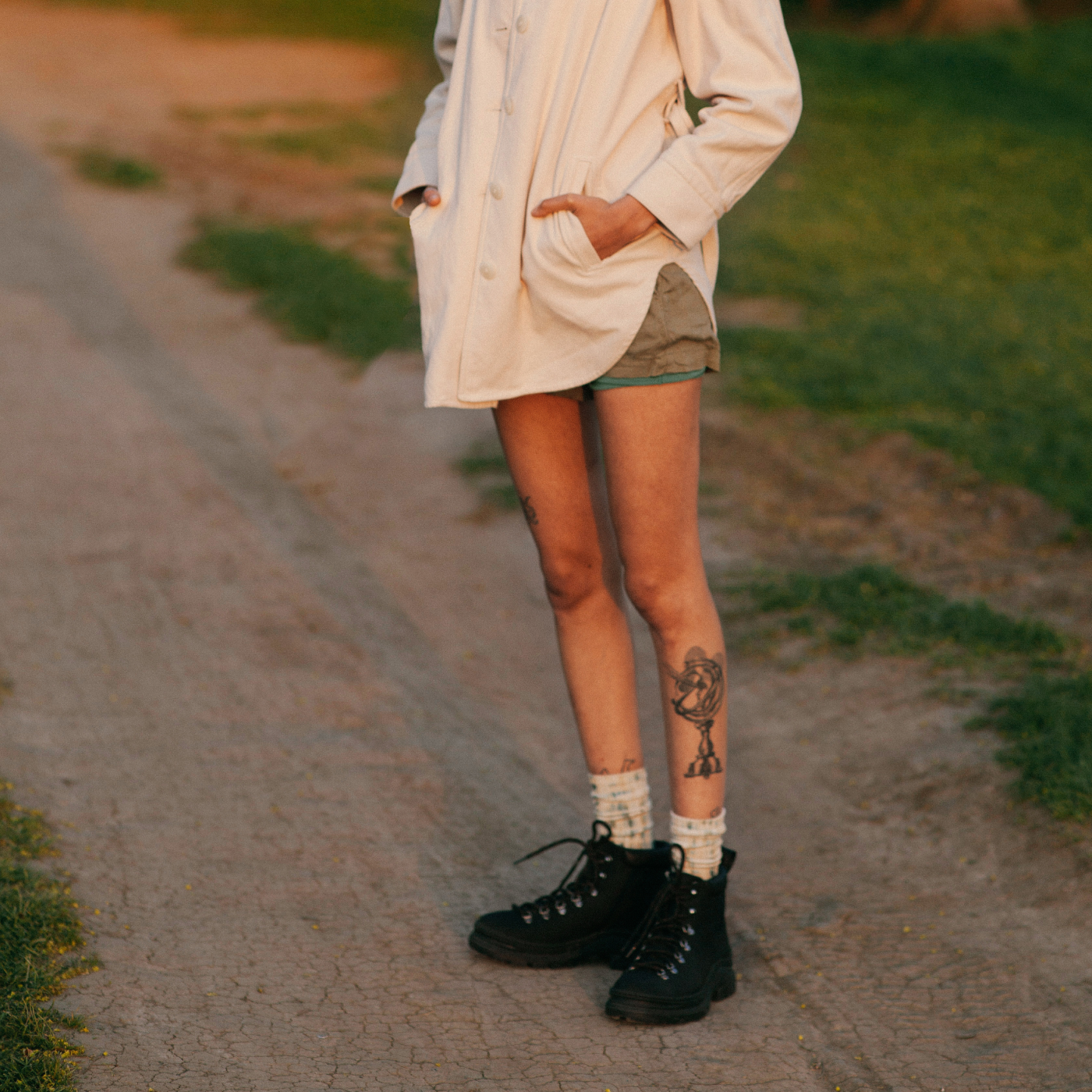 Our Weekend Boots are vegan and 98% virgin plastic free. The nylon upper is made from repurposed marine plastic collected by fishermen globally. Our lug sole is made with natural and recycled rubber. High performance water based vegan glue binds the upper and soles together.