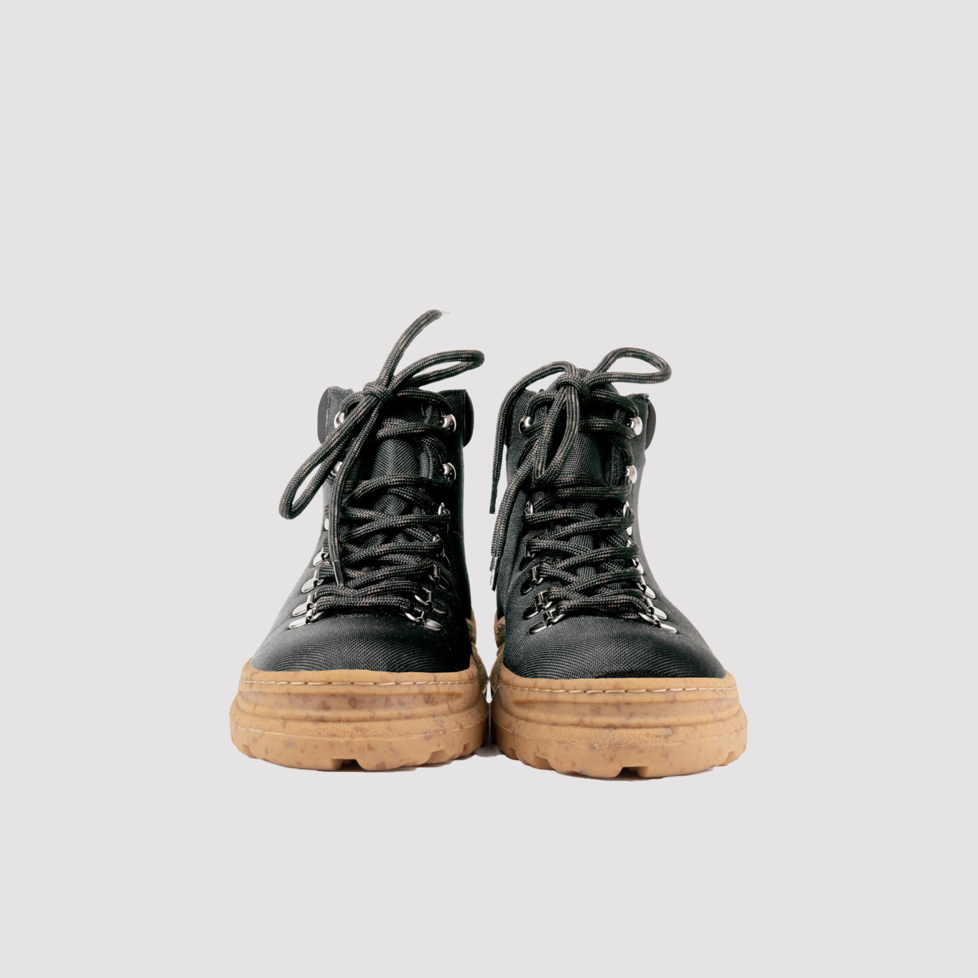 Our Weekend Boots are vegan and 98% virgin plastic free. The nylon upper is made from repurposed marine plastic collected by fishermen globally. Our lug sole is made with natural and recycled rubber. High performance water based vegan glue binds the upper and soles together.
