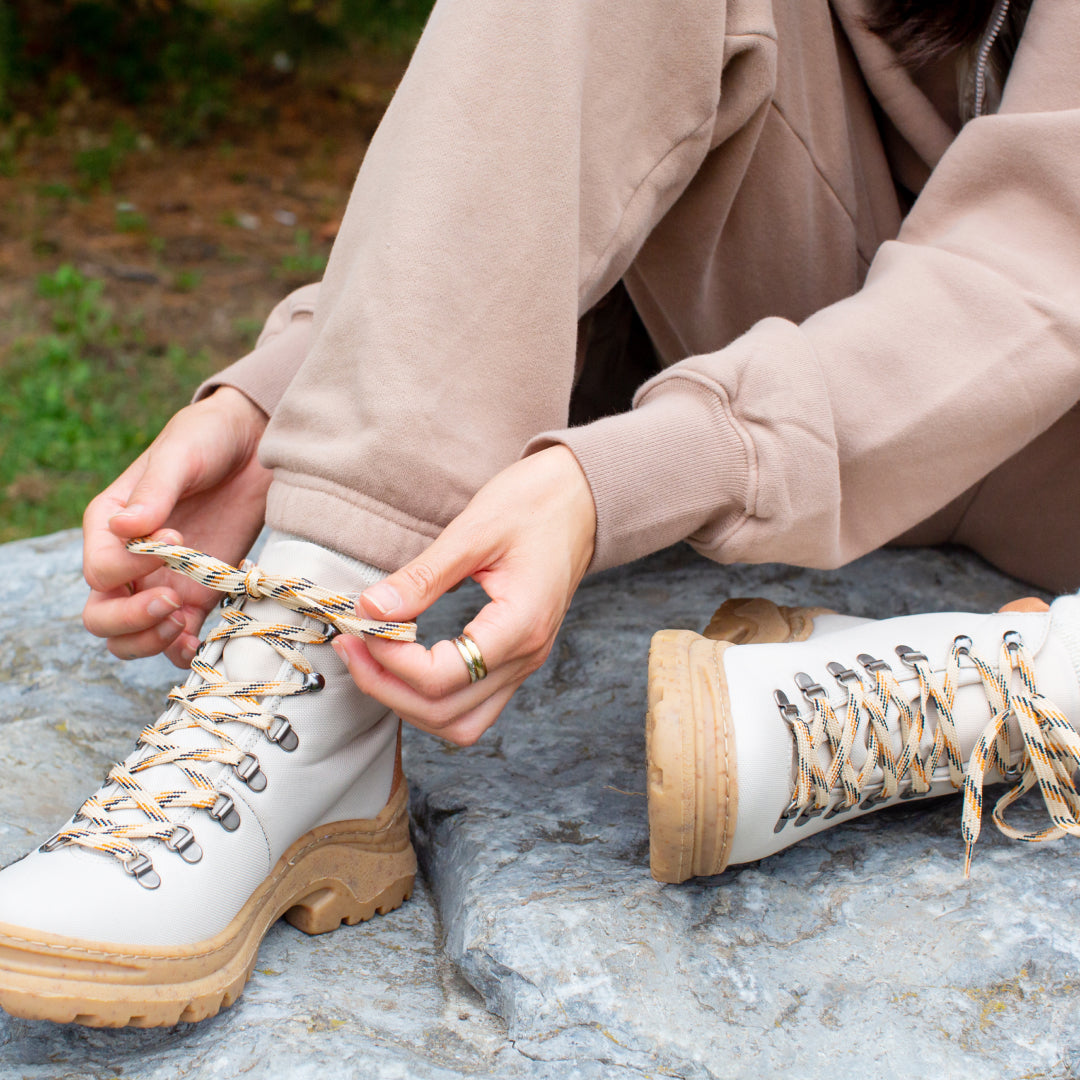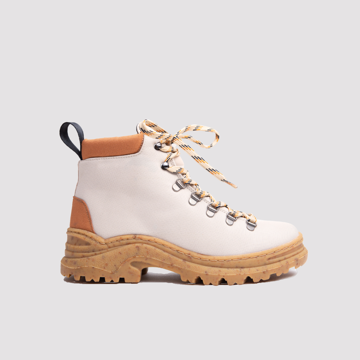 Our Weekend Boots are vegan and 98% virgin plastic free. The nylon upper is made from repurposed marine plastic collected by fishermen globally. Our lug sole is made with natural and recycled rubber. High performance water based vegan glue binds the upper and soles together.