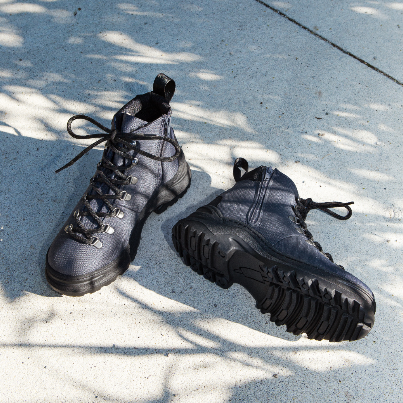 Our Weekend Boots are vegan and 98% virgin plastic free. The nylon upper is made from repurposed marine plastic collected by fishermen globally. Our lug sole is made with natural and recycled rubber. High performance water based vegan glue binds the upper and soles together.